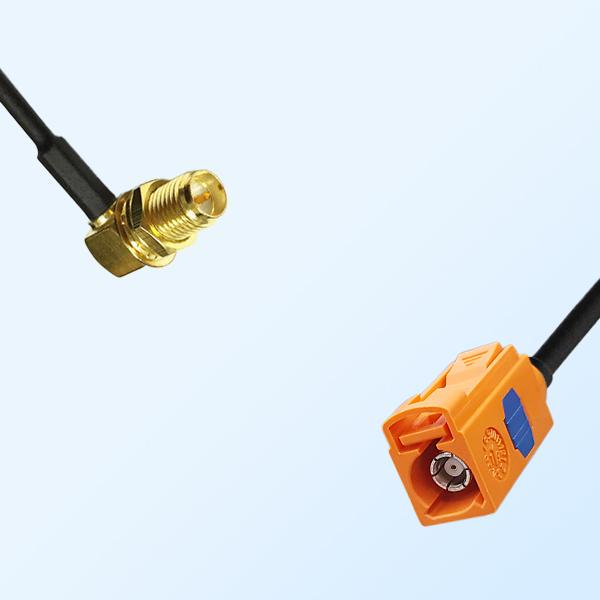 Fakra M 2003 Pastel Orange (Female) to RP SMA (Bulkhead Female Right Angle) RF Coaxial Cable Assemblies, RG316, RG316D, RG174, LMR100, RG178, RG58, LMR195 Optional.