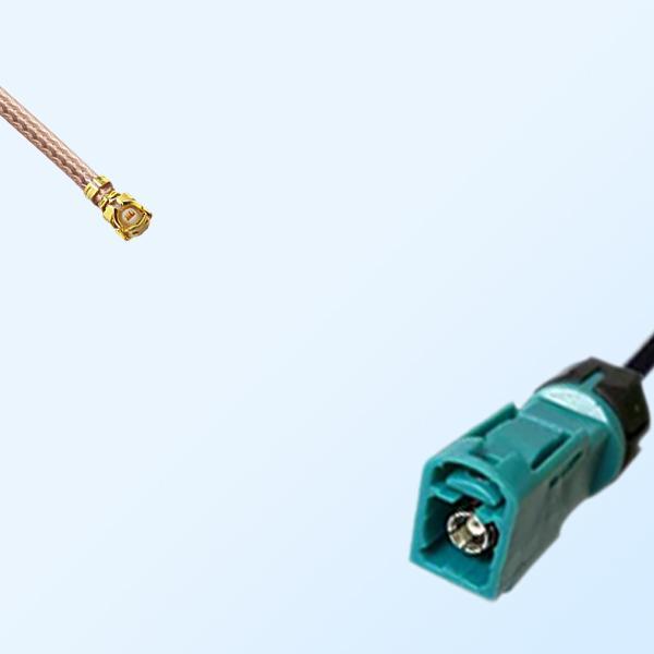 Fakra Z 5021 Water Blue (Female Waterproof) to IPEX (Female Right Angle) RF Coaxial Cable Assemblies, RG178 Optional.