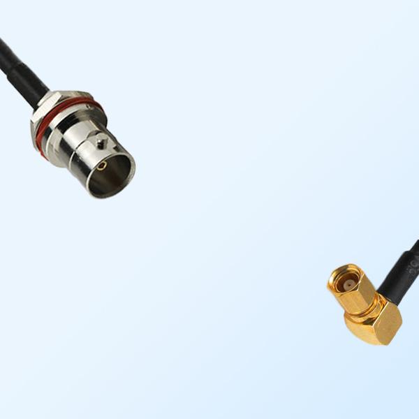 BNC (Front Mount Bulkhead Female with O-Ring) to SSMC (Female Right Angle) RF Coaxial Cable Assemblies, RG316, RG316D, RG174, LMR100 Optional.